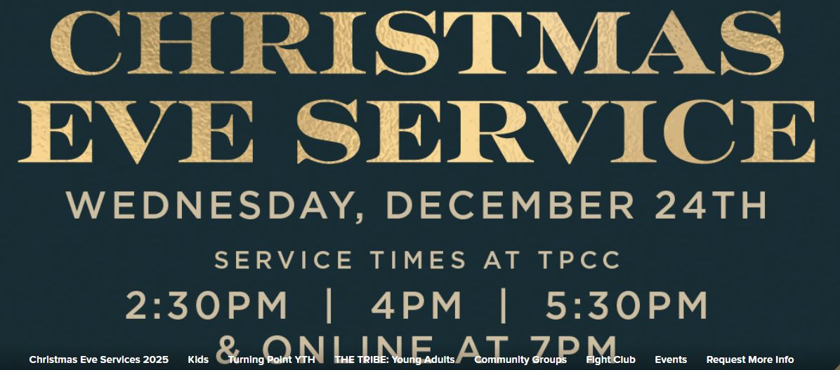 For more details and to register for services, visit tpcconline.churchcenter.com or www.tpcconline.com/christmas-eve-services-2025.