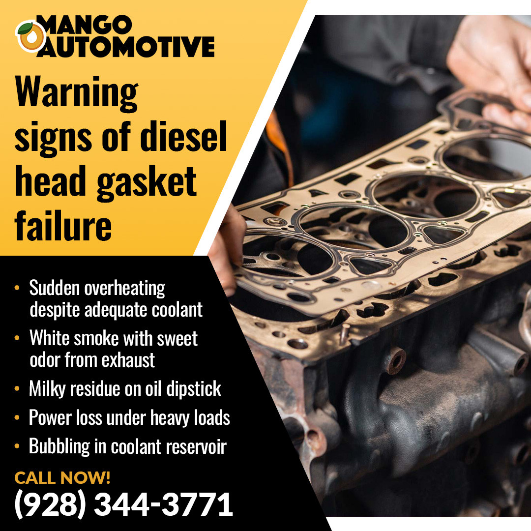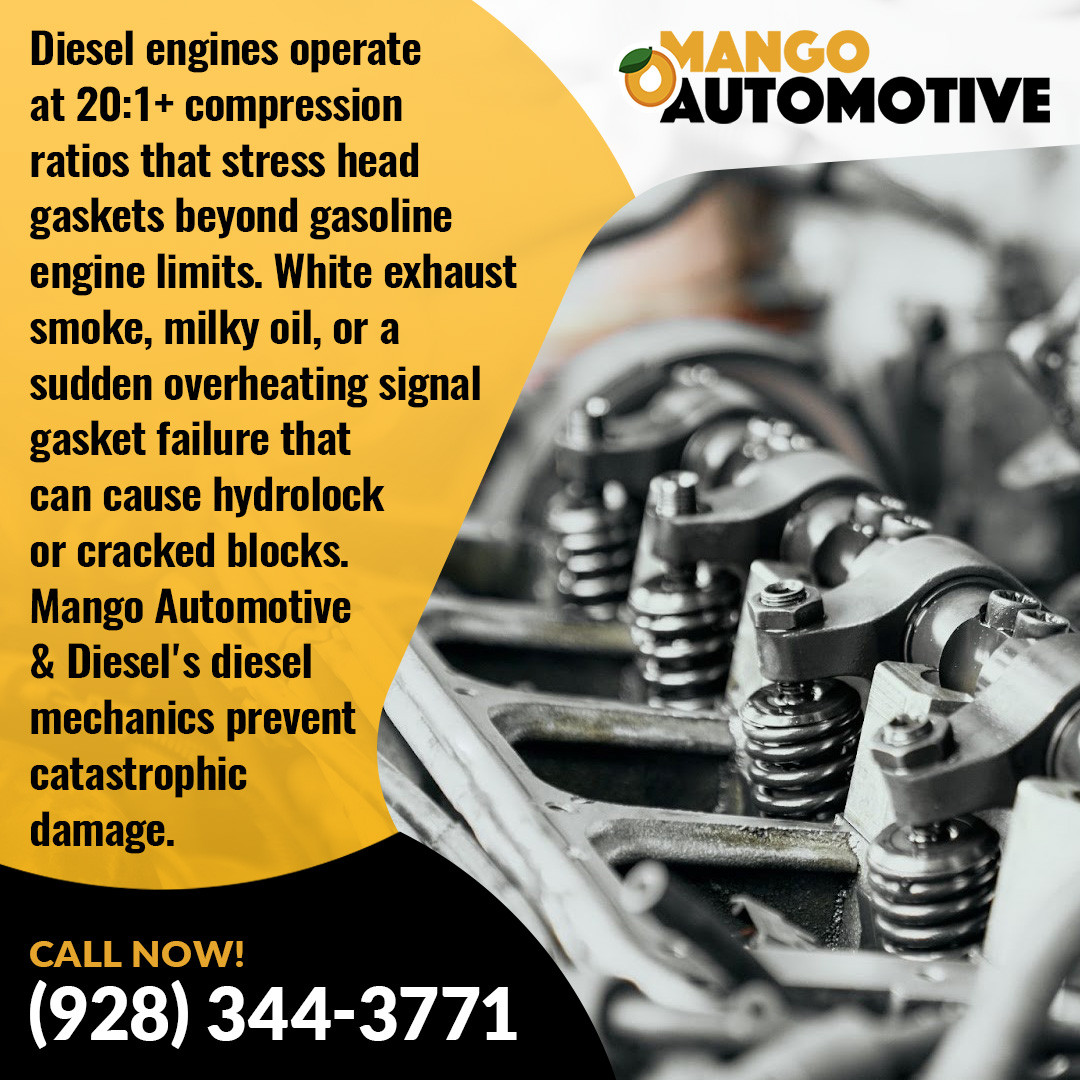 For diesel head gasket repair or inspection, contact Mango Automotive & Diesel, the trusted diesel mechanic near you, at (928) 344-3771. Their experienced team is ready to diagnose problems before they become emergencies.