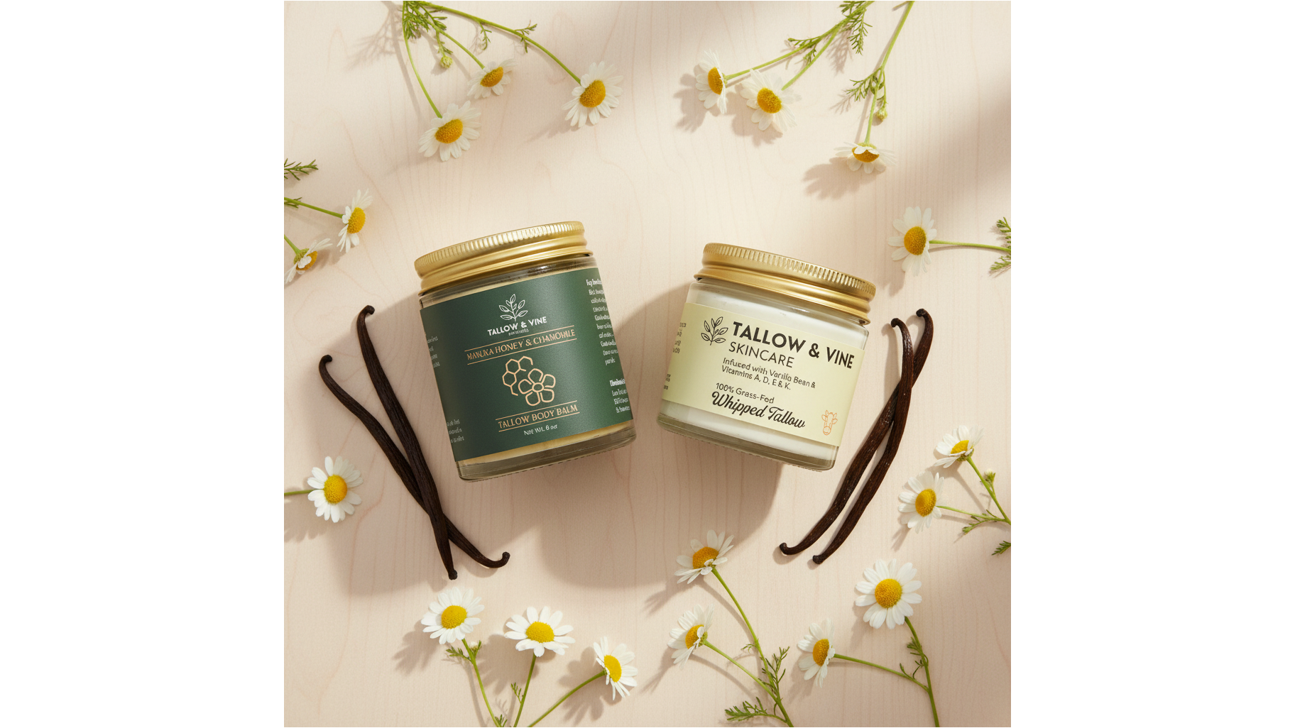 Tallow & Vine creates clean, grass-fed tallow-based skincare products for people with sensitive and reactive skin conditions.