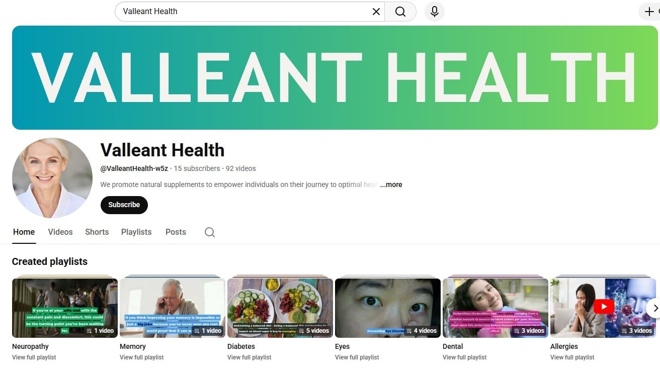 Valleant has launched a curated YouTube series addressing multiple health conditions, moving beyond generic wellness advice to embrace targeted health education. The series features organized playlists covering diabetes, dental health, neuropathy, allergies, memory, and eye health, representing a substantive expansion of Valleant’s mission to promote accessible health literacy.