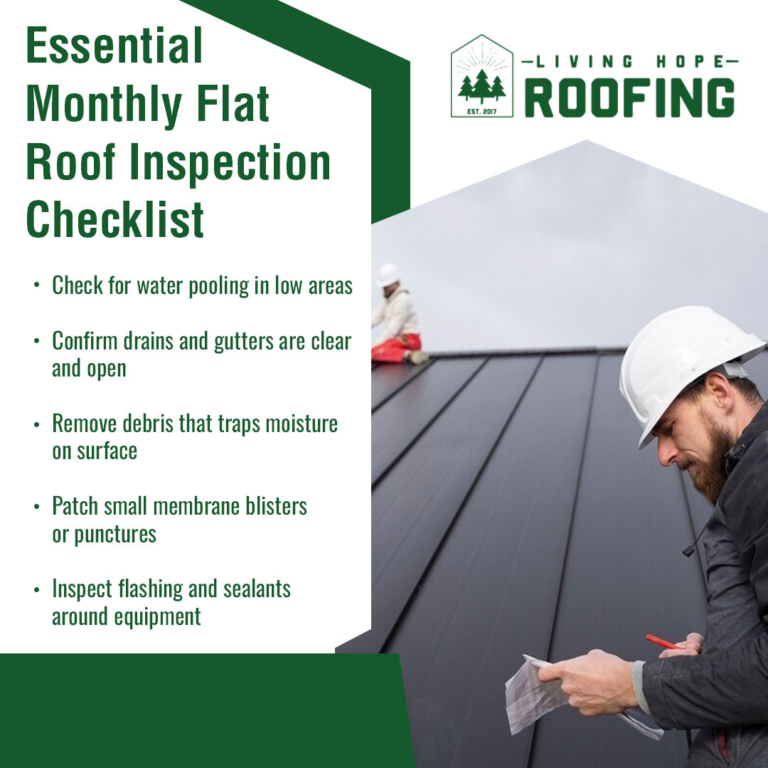 A consistent inspection routine plays a key role in protecting commercial flat roofs. Living Hope Roofing advises property owners to follow monthly and seasonal checkups to identify early signs of damage before they escalate.