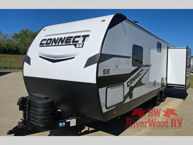 Travel trailers attach to a rear bumper hitch and rely on weight distribution systems for balanced towing.