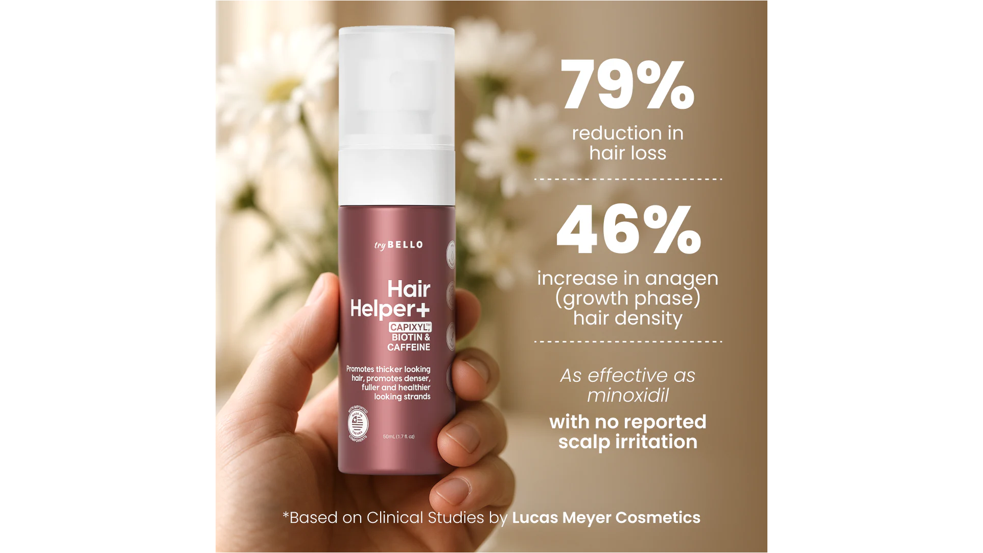 More details can be found at https://trybello.com/products/bello-hair-helper-spray-plus